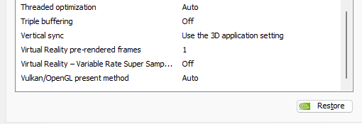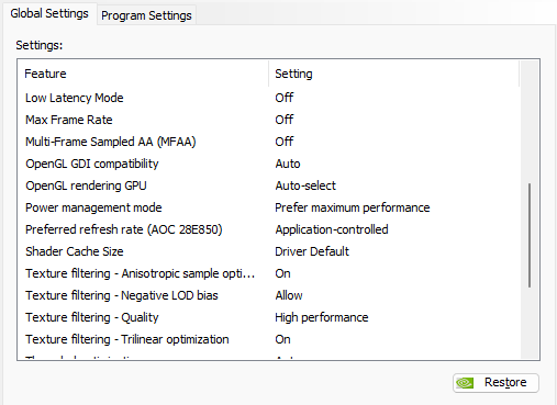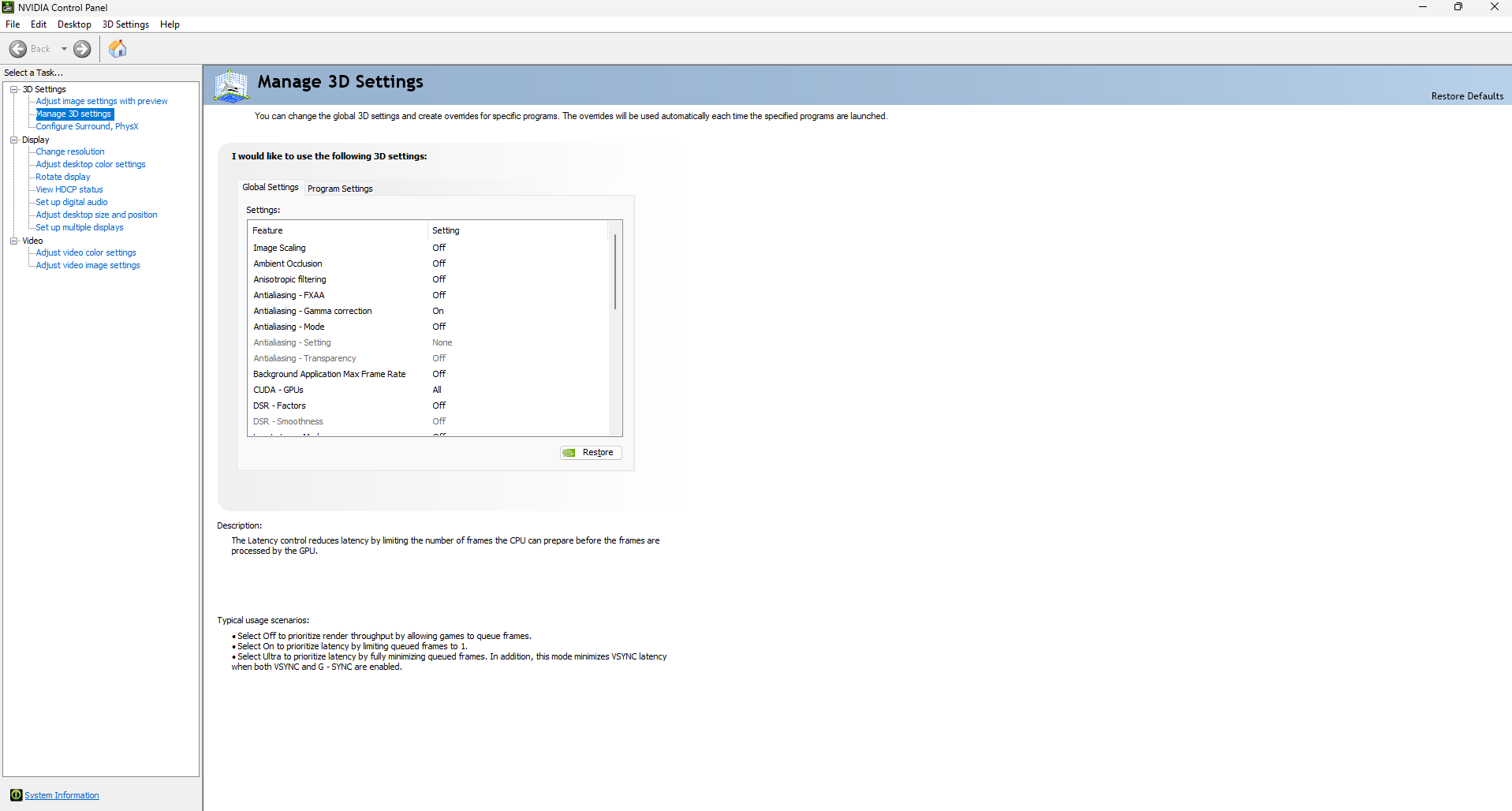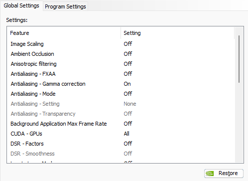 The following rendering settings can be configured in the NVIDIA Control Panel: