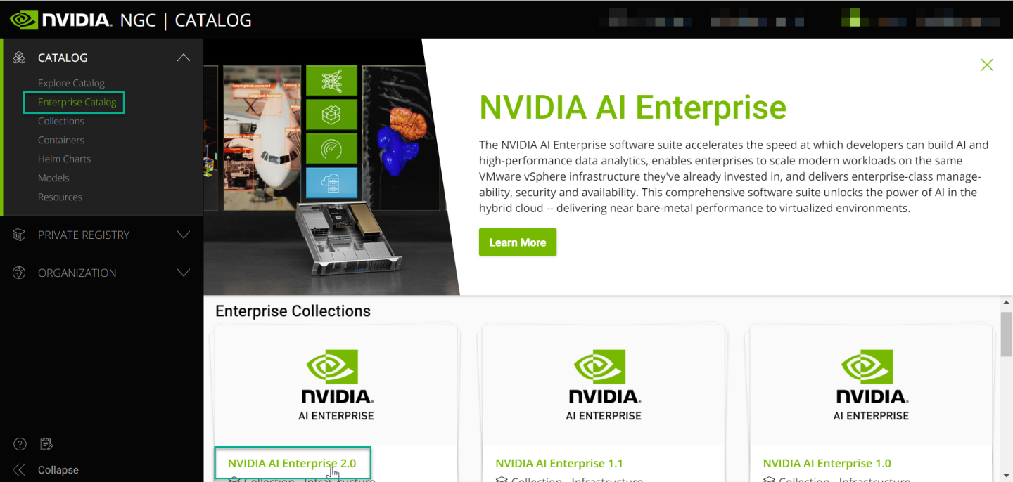 Using the NVIDIA AI Enterprise search filters, users can access GPU-optimized software for deep learning, machine learning, and HPC through the NGC catalog that provides containers, models, model scripts, and industry solutions.