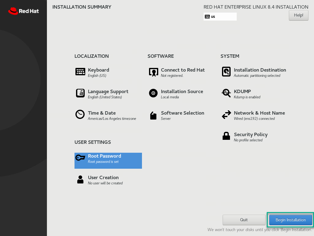 Click Begin Installation to start the install.