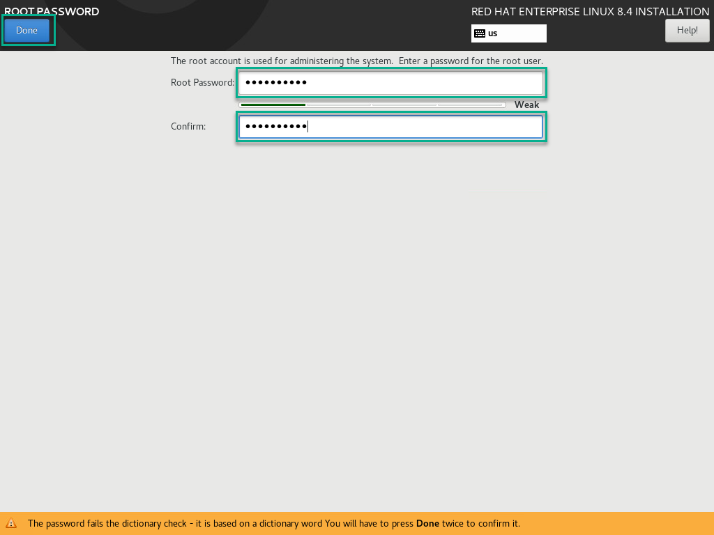 Select Root Password under the User Settings Column. Create a password and click Done.