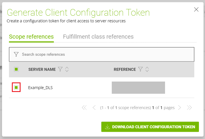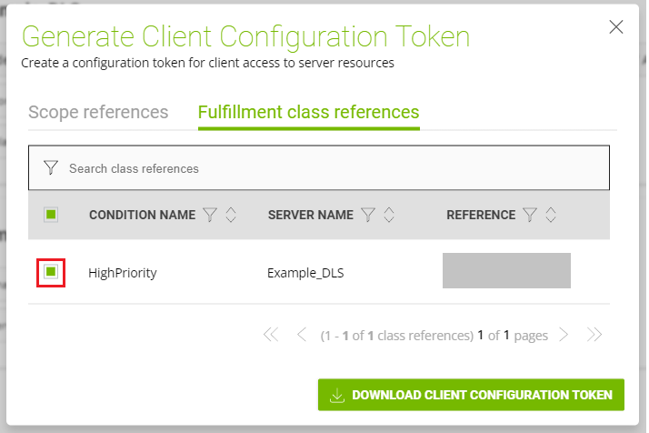 In the Generate Client Configuration Token pop-up window that opens, select the references you want to include in the client configuration token.