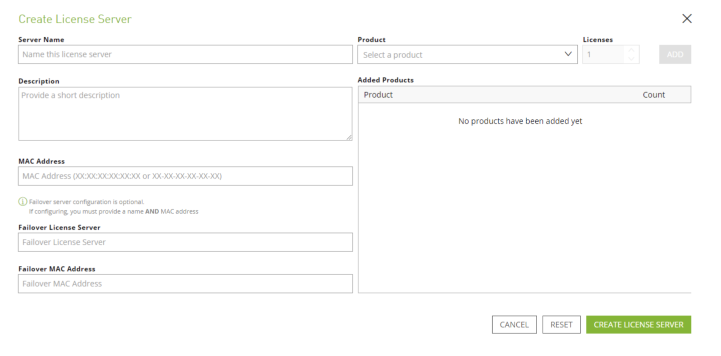 Create a License Server in the NVIDIA License Portal by navigating to the License Servers tab and clicking ‘CREATE SERVER’. Make sure to point it to the MAC address of the machine the Flexera license server is running on.