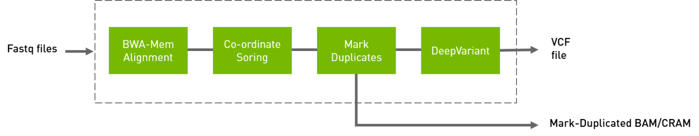 The deepvariant germline pipeline includes alignment, sorting, and marking, as well as the deepvariant variant caller.