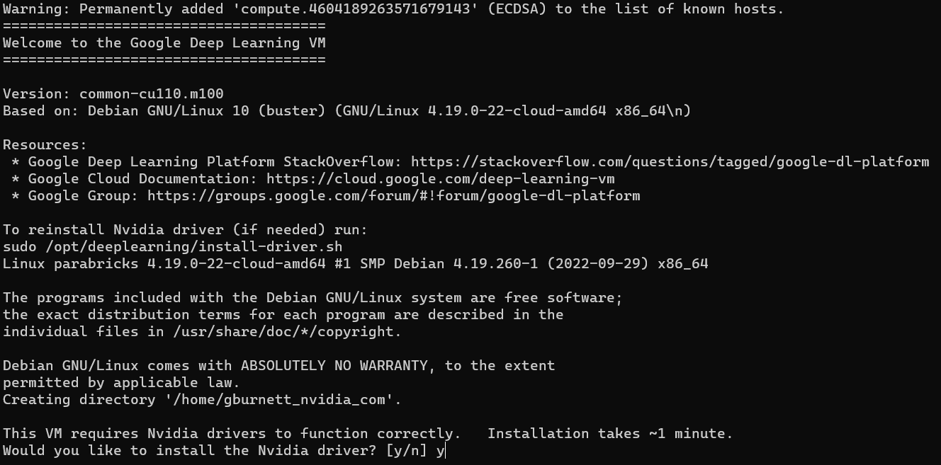 Once we are connected, the VM will ask if we want to install the NVIDIA Driver. Select yes, and allow it to install the drivers automatically.