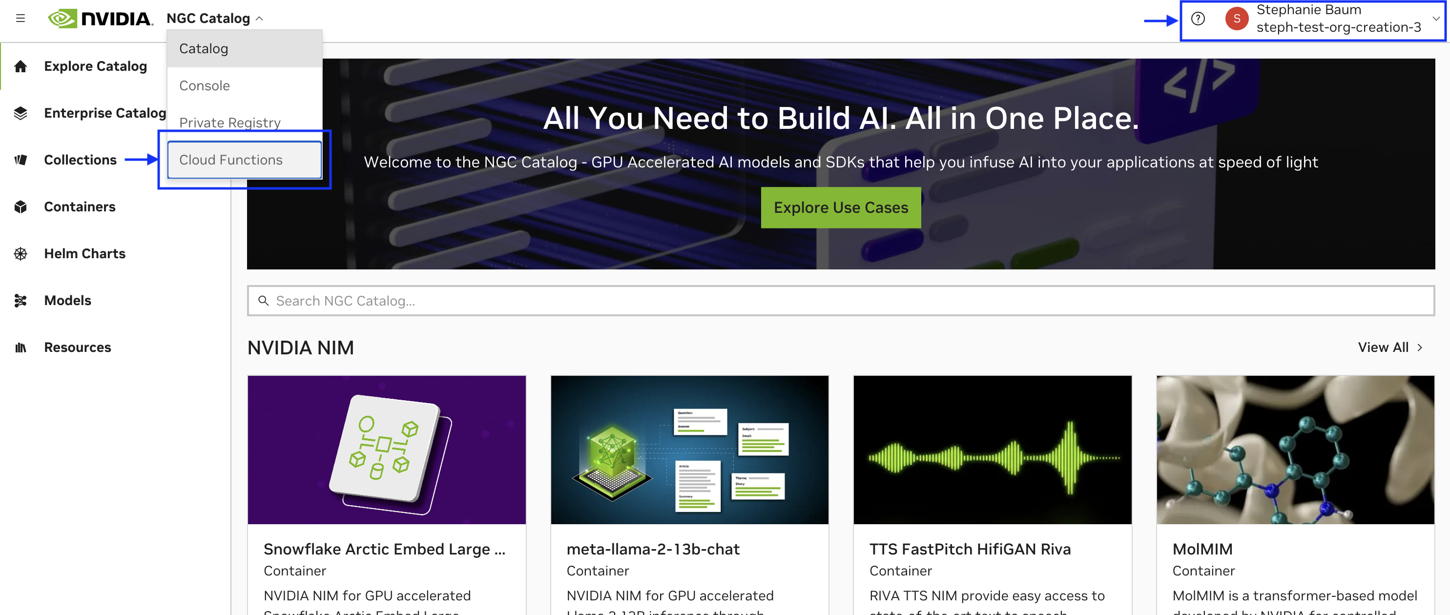 After completing Step 3 you will be redirected to your new NGC organization.