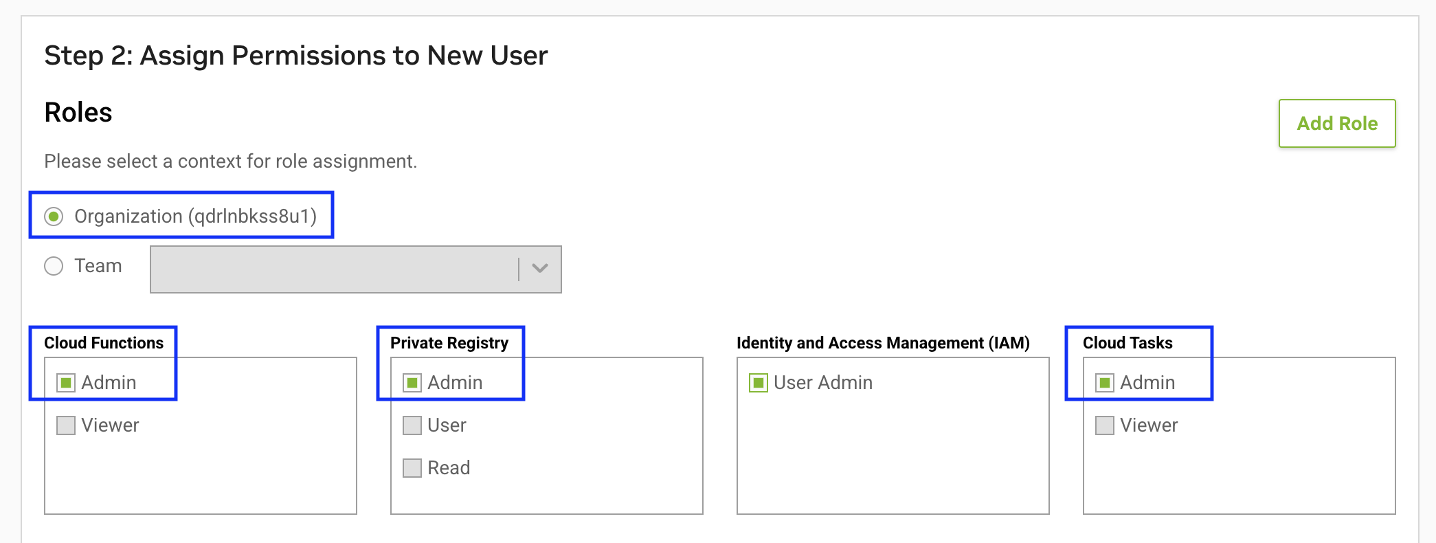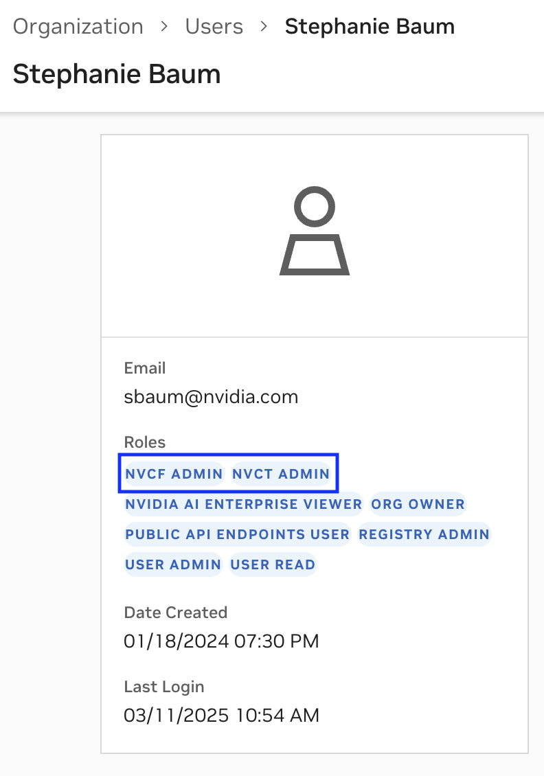If the user would like to use the NVCF or NVCT (Tasks) APIs and CLI, it is extremely important to add the user roles at the Organization level not a team level. This is required for any Personal API Key generated to have the correct permissions.