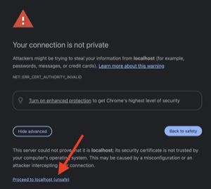 Click Proceed to <proxy-ip> (unsafe) or similar option