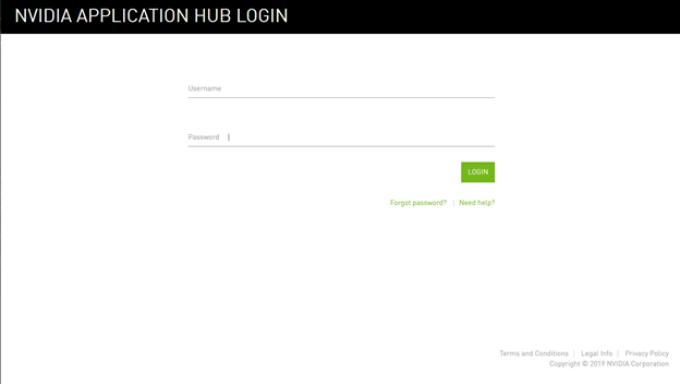 Visit the NVIDIA Enterprise Application Hub by following the Login link in the instructions for using your NVIDIA Entitlement Certificate or when prompted after setting the password for your NVIDIA Enterprise Account.