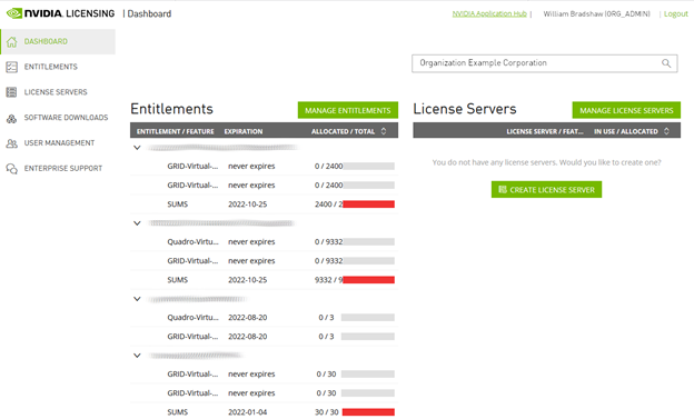 NVIDIA Licensing Portal Dashboard#
