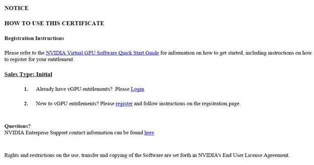 Your NVIDIA Entitlement Certificate also provides instructions for using the certificate.