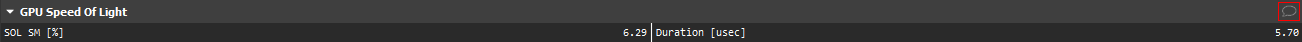 SpeedOfLight SpeedOfLight.section High-level overview of the utilization for compute and memory resources of the GPU. For each unit, the Speed Of Light (SOL) reports the achieved percentage of utilization with respect to the theoretical maximum.