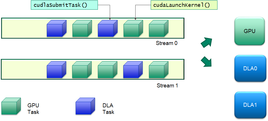 This is done by passing CUDLA_SUBMIT_NOOP in the flags parameter of cudlaSubmitTask(). A noop submission implies that all the other submission semantics are maintained. Specifically, the task is submitted to DLA, wait/signal events are considered before and after and stream semantics are respected. The key difference is that the task is skipped by the DLA for execution. This is supported in both hybrid and standalone modes.