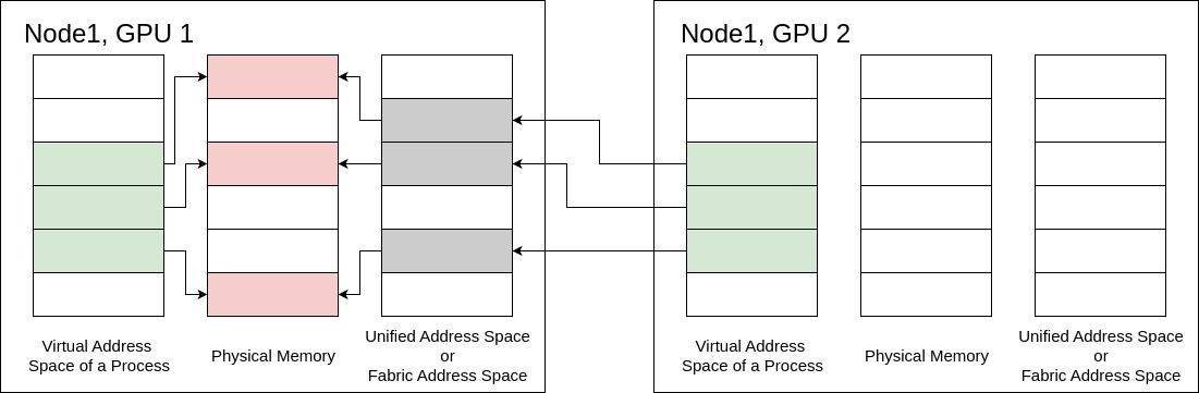 Reserve and Map: The driver creates a mapping from the program’s Virtual Address (VA) to the GPU’s Physical Address (PA) to its network Fabric Address (FA).