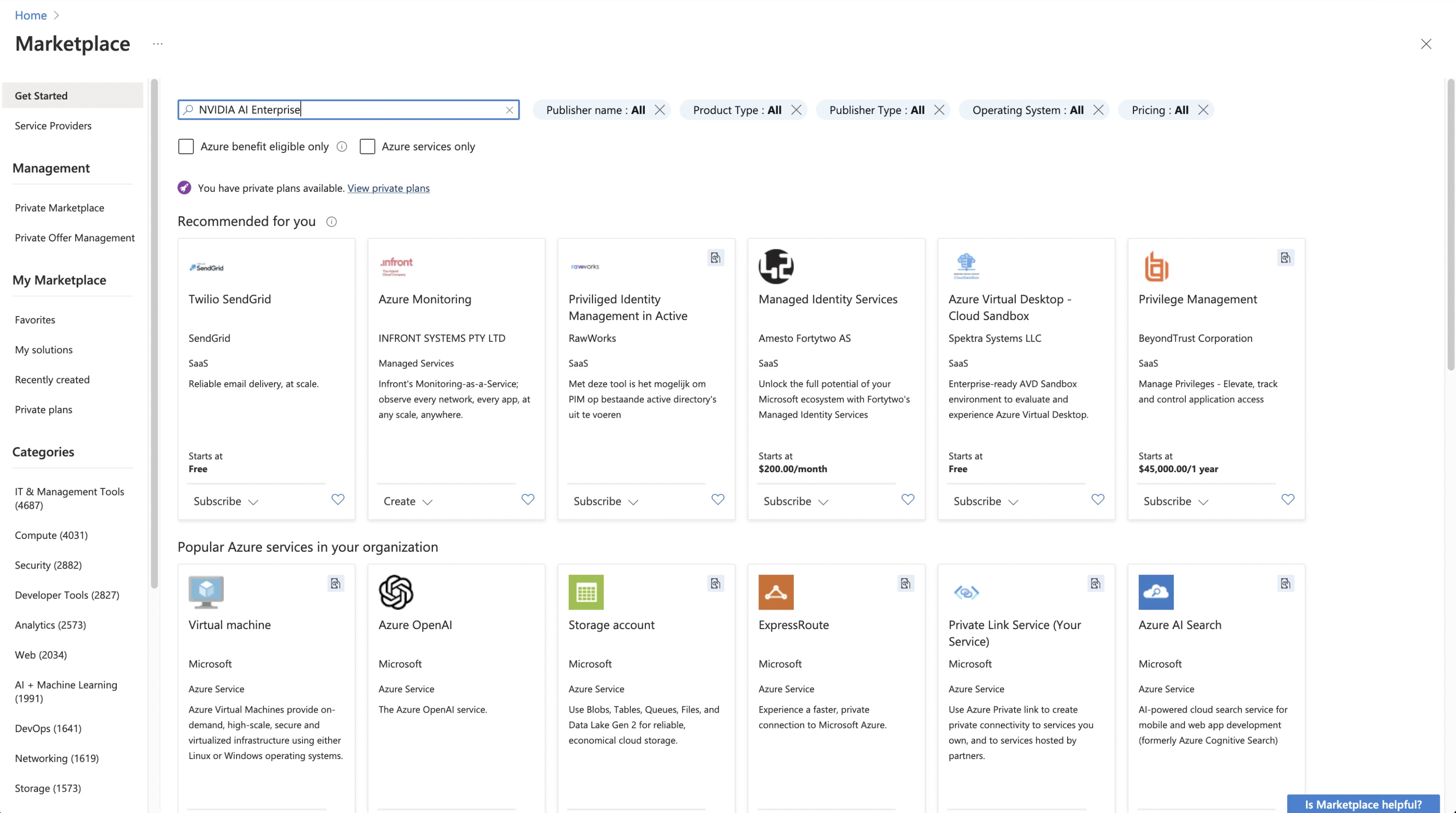 2. Look up NVIDIA AI Enterprise in the search bar.