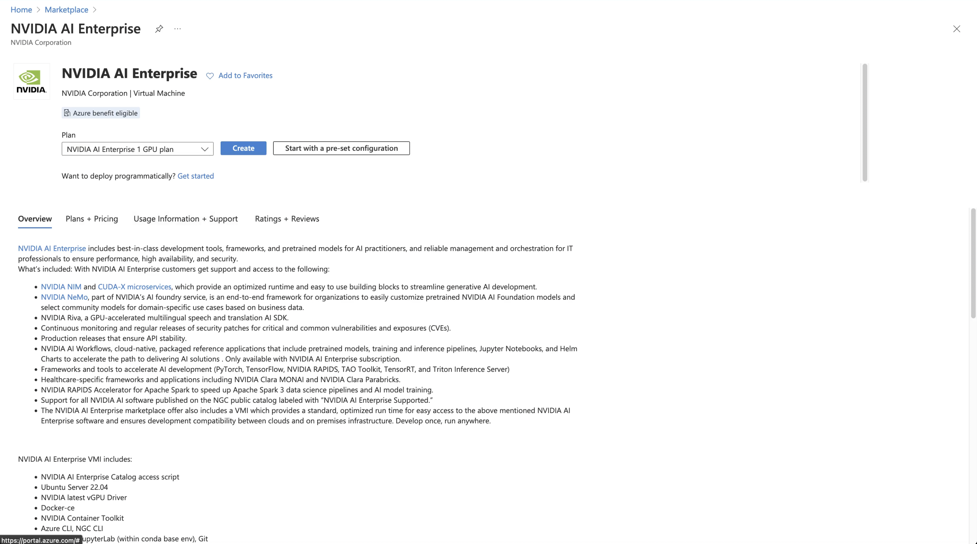You should see the following results. Click on the first option, the NVIDIA AI Enterprise Virtual Machine.