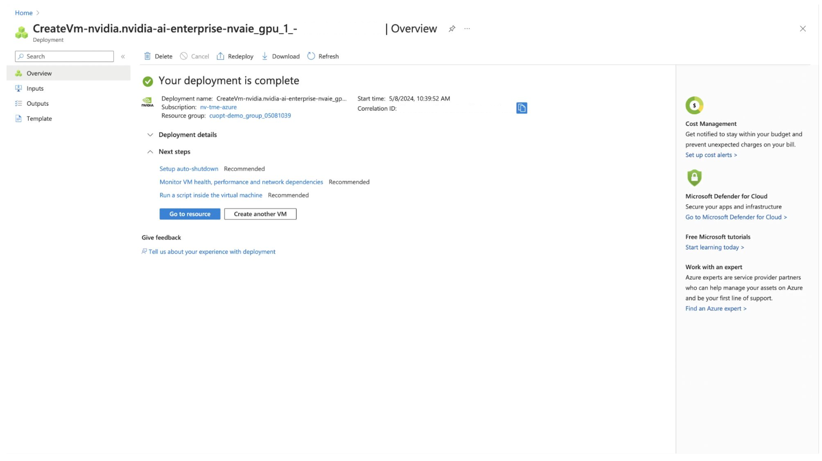 Once connected to the VM, generate an identity token. Activate your NVIDIA AI Enterprise subscription using that identity token on NGC. Follow the instructions here.