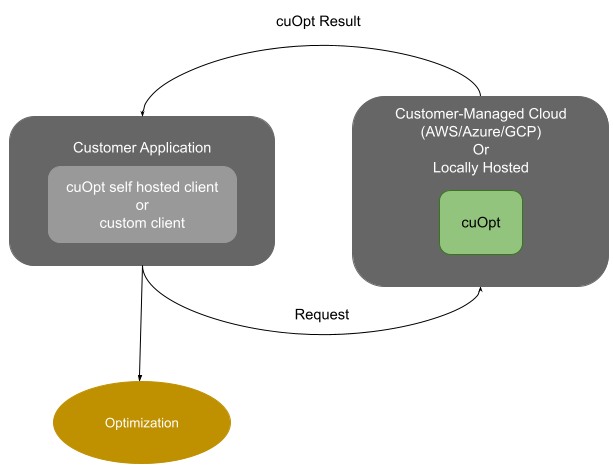 The NVIDIA cuOpt self-hosted server is a REST (HTTP/JSON) service for integrations that speak HTTP. Use Quickstart Guide for deployment, Server API for the API, and Client API Overview for clients (including cuopt-sh-client).