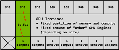 compute slices. In the diagram below, a 5GB memory slice is combined with 1 compute slice to create a 1g.5gb GI profile: