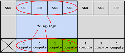 compute slices. In the diagram below, a 5GB memory slice is combined with 1 compute slice to create a 1g.5gb GI profile: