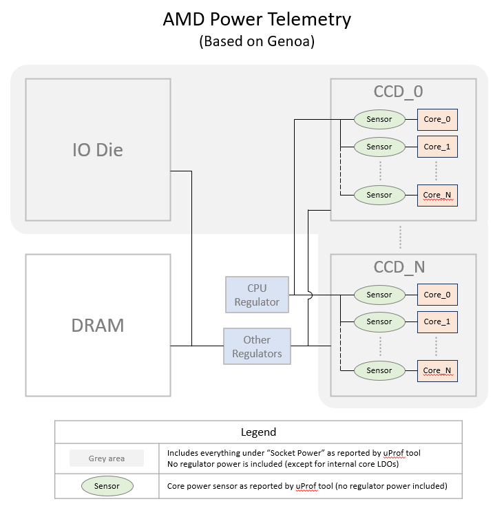 Guidance for measuring power usage for the DRAM with AMD processors depends on platform implementation details. Contact your platform vendor for guidance about measuring power usage for comparison to the measurements LPDDR5x power readings with Grace.