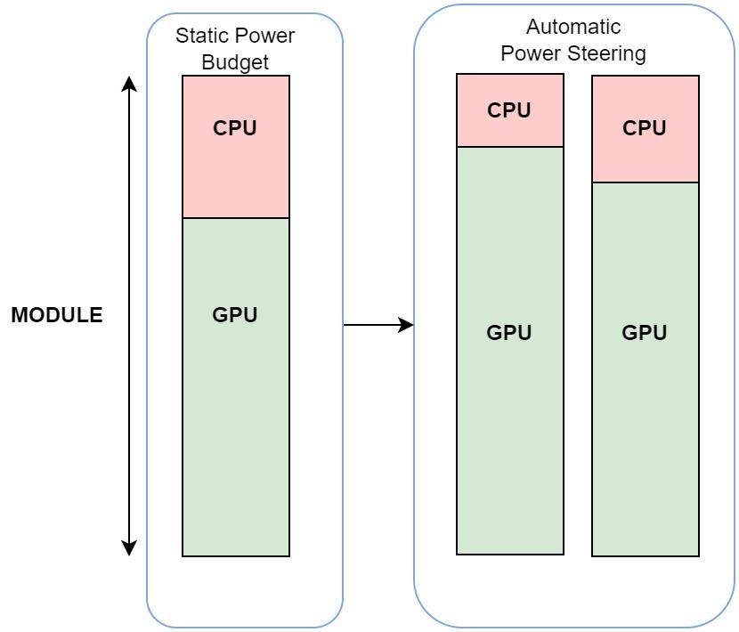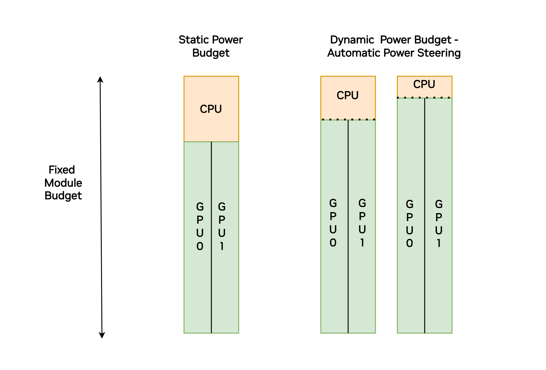 This is done by Automatic power steering in the GPU because the GPU monitors power telemetry for Grace, Module, and the GPU. Power capping at the Module scope monitors the consumed Grace power, which removes the power from the Module power limit, and gives the rest to the GPU.