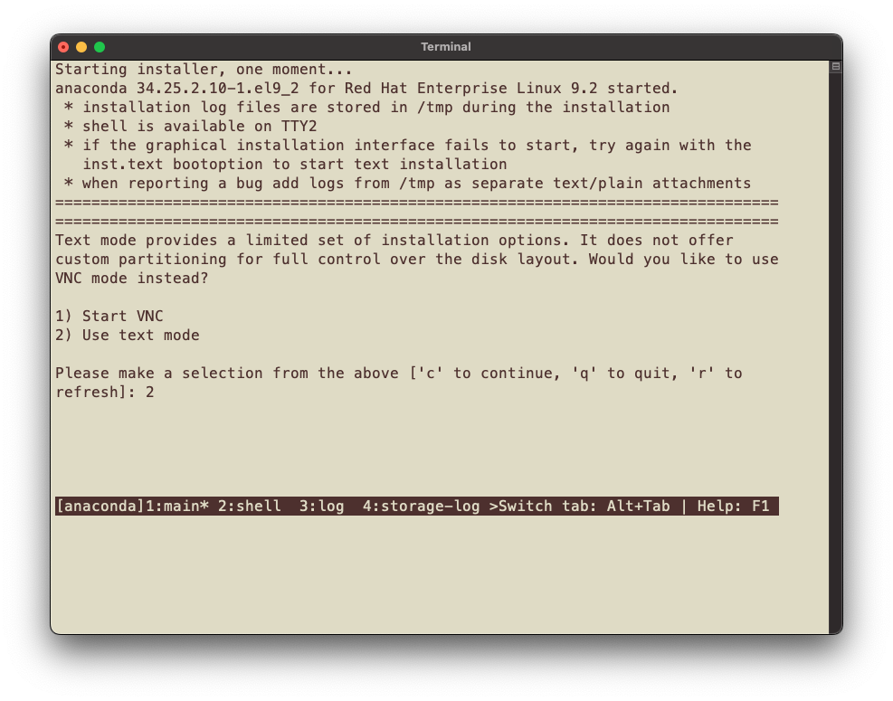 When installing RHEL 9.2 or RHEL 9.3, you must select the Minimal Install base environment. There is a dependency with the kmod-kvdo package, and this step prevents the 4k kernel from being installed concurrently with the 64k kernel (refer to Installing kernel-64k for ARM 64 for more information).