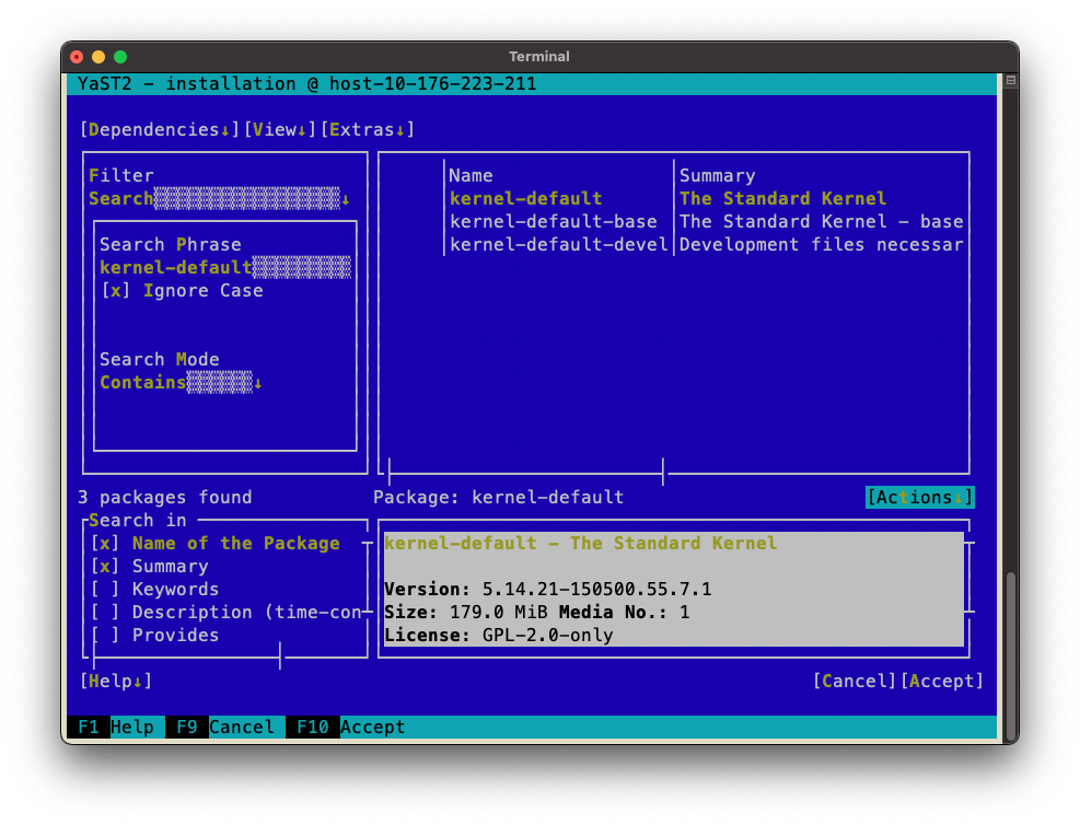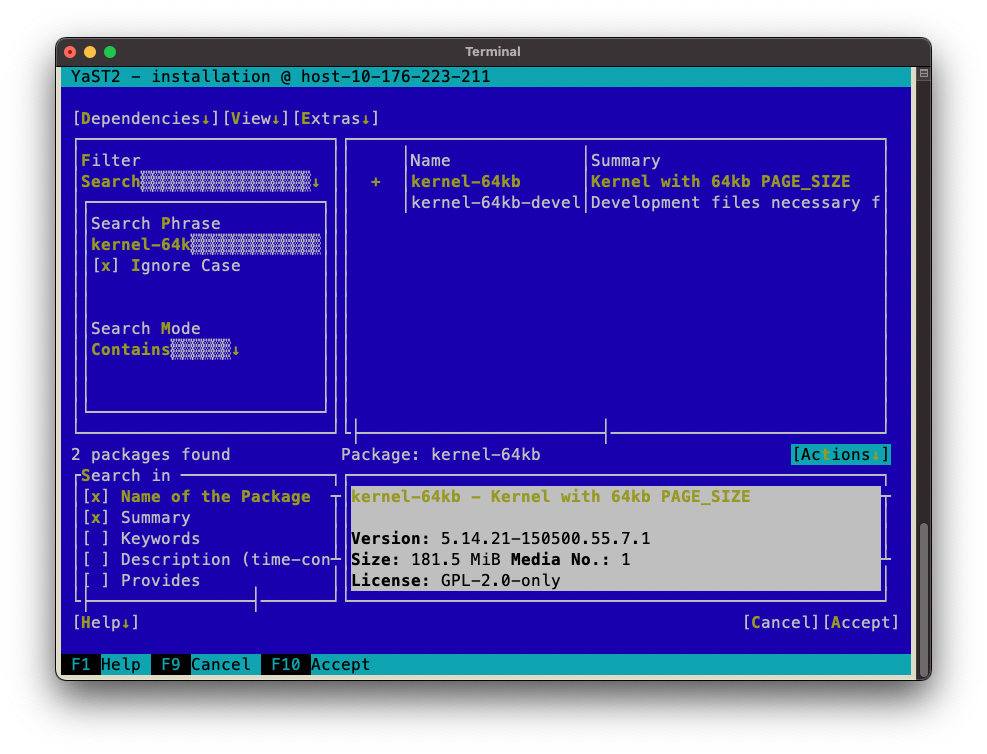 From the software change pane navigate to the Search Phrase box, and search for kernel-64k.