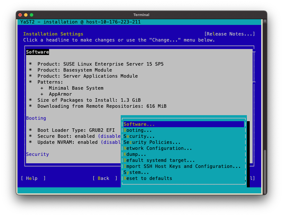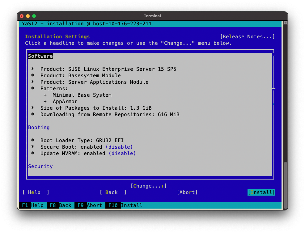 To automate the installation with an AutoYaST configuration file, refer to Installing with AutoYaST.