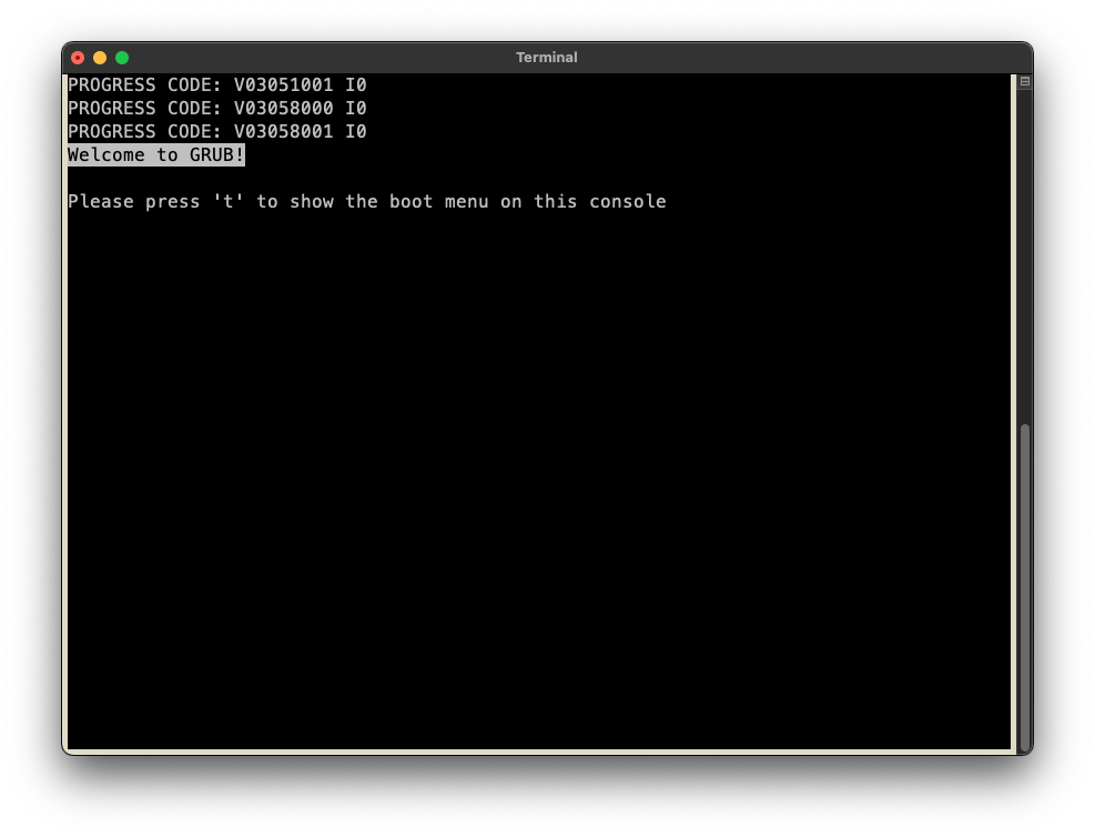 The menu will time out after 60 seconds. If no action is taken, it will proceed with booting the default selection (Installation).