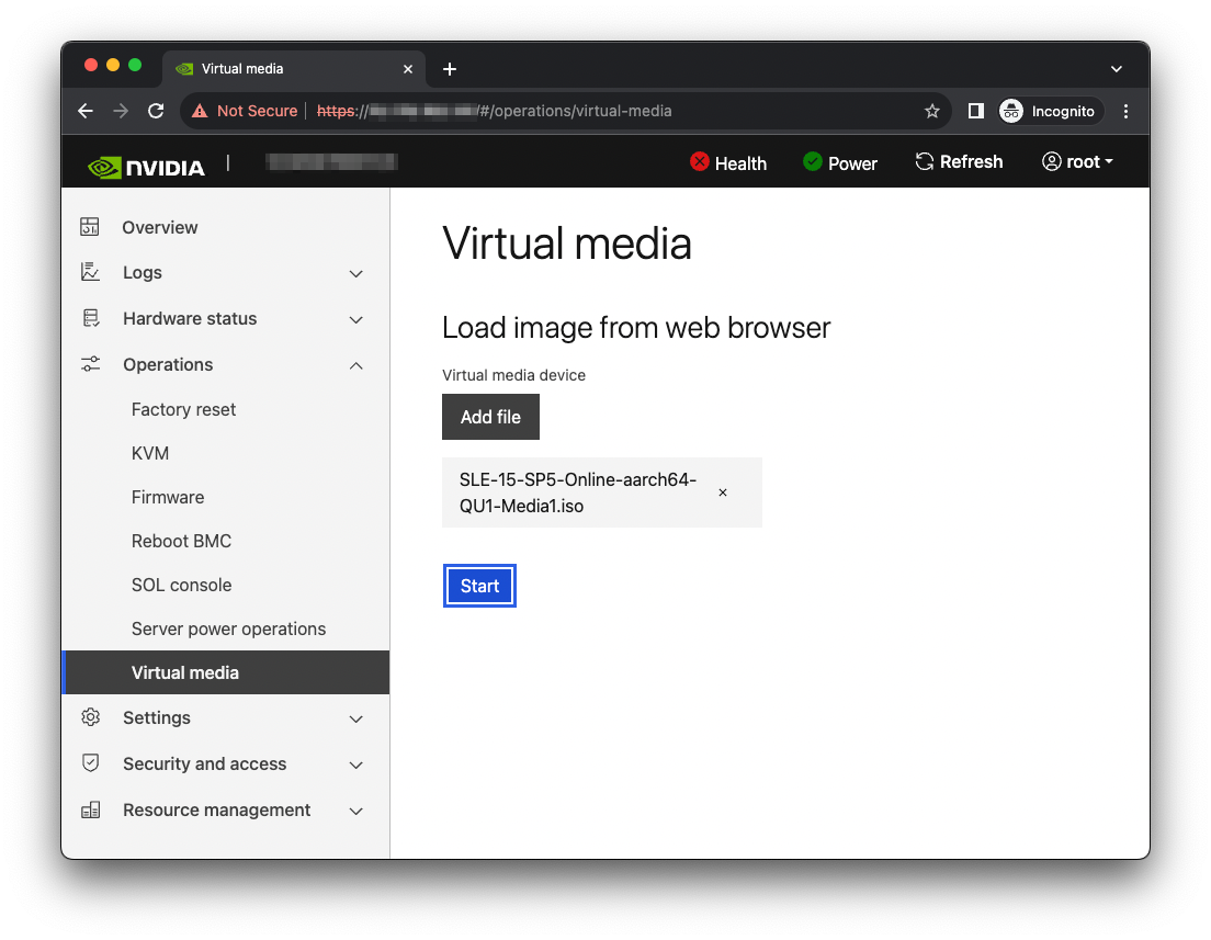 Obtain the SLES ISO for Arm® image (aarch64) and store it on your local disk. Refer to SUSE Linux Enterprise Server Installation Media or Downloading SUSE Linux Enterprise Server for the instructions.