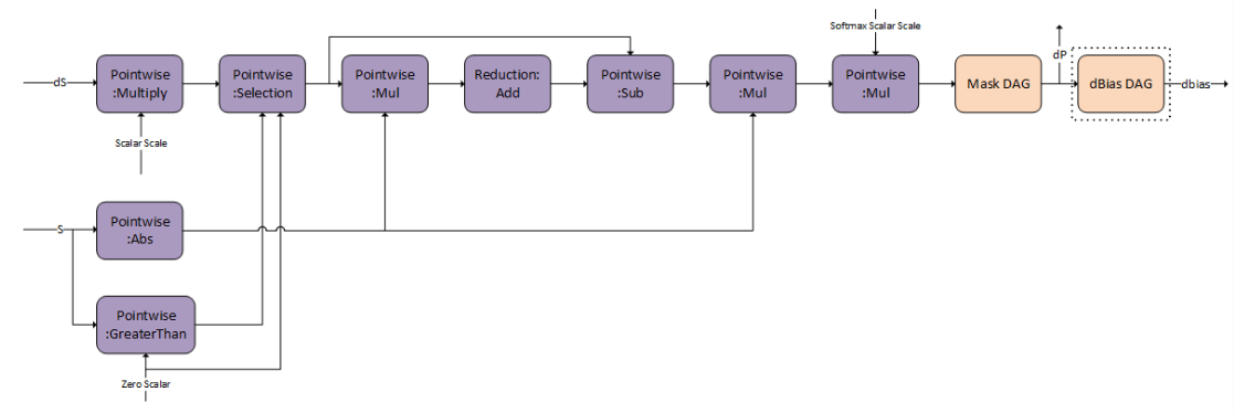 g 4 is capable of storing an intermediate tensor to global memory marked as S, which can be used for fused multi-head attention bprop. Both DAG:Softmax and DAG:Dropout have this capability. Set S as the output from the last DAG in the graph.