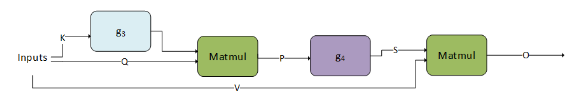\(dV=matmul\left( g_{5}\left( S \right), dO \right)\) \(dS=matmul\left( dO, VT\right)\) \(dQ=matmul\left( g_{6}\left( dS \right), K \right)\) \(dK=matmul\left( Q, g_{7}\left( dS \right)\right)\)