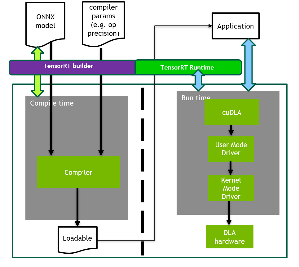 There are several ways to build and launch a DLA loadable, either embedded in a TensorRT engine or a standalone form.