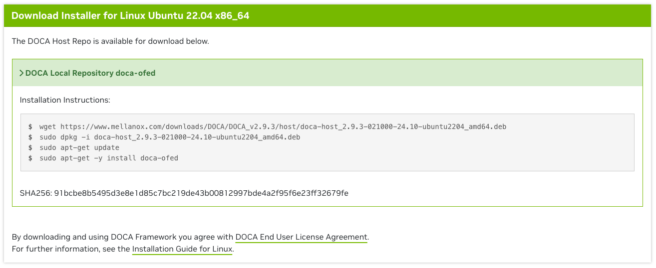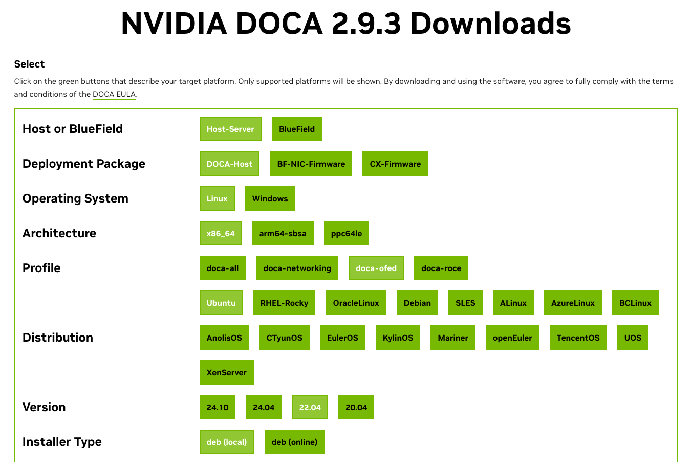 Go to the DOCA downloads page and select the appropriate OS and package. The instructions assume a local installer. The system here is based on DGX OS 6, which is an Ubuntu x86 version 22.04.