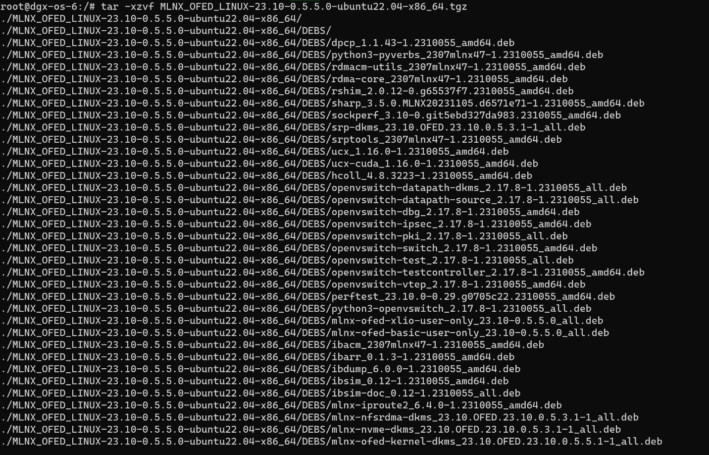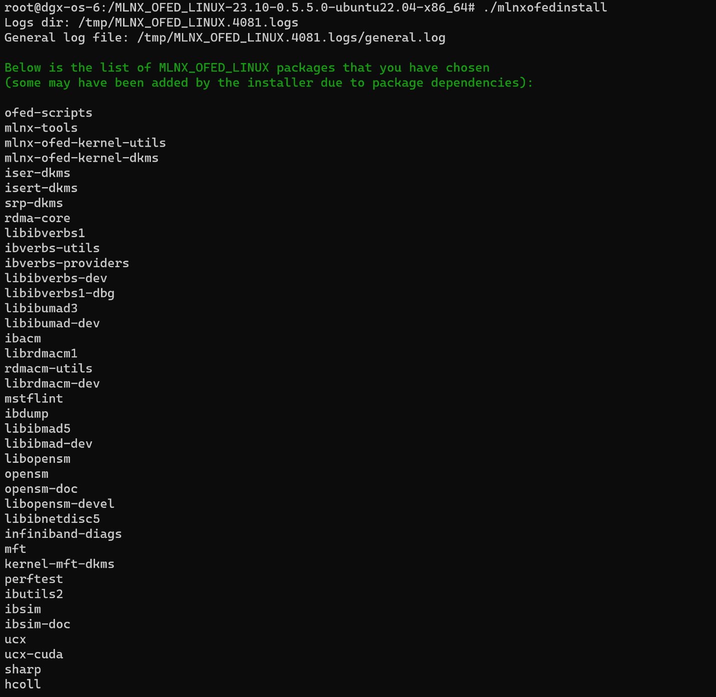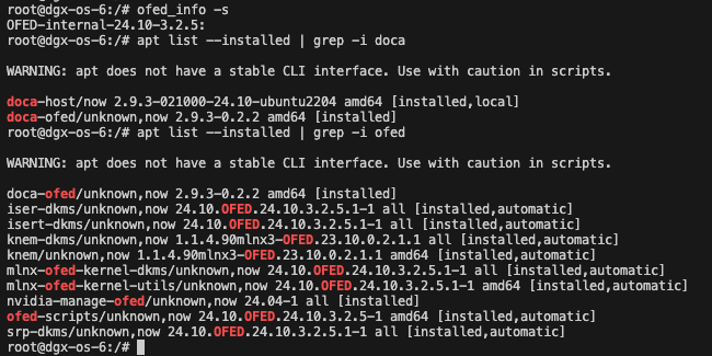 root@dgx-os-6:/# ofed_info -s MLNX_OFED_LINUX-23.10-0.5.5.0: