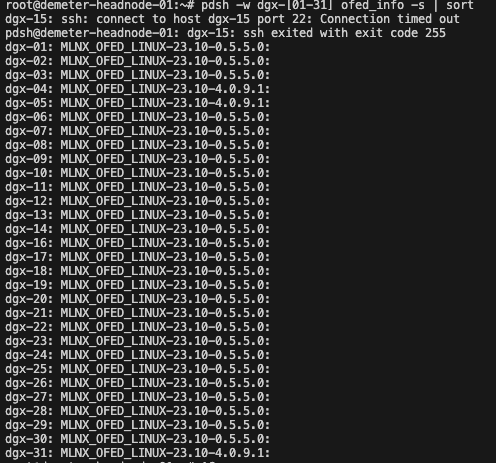 root@demeter-headnode-01:~# pdsh -w dgx-01 reboot dgx-01: Connection to dgx-01 closed by remote host.