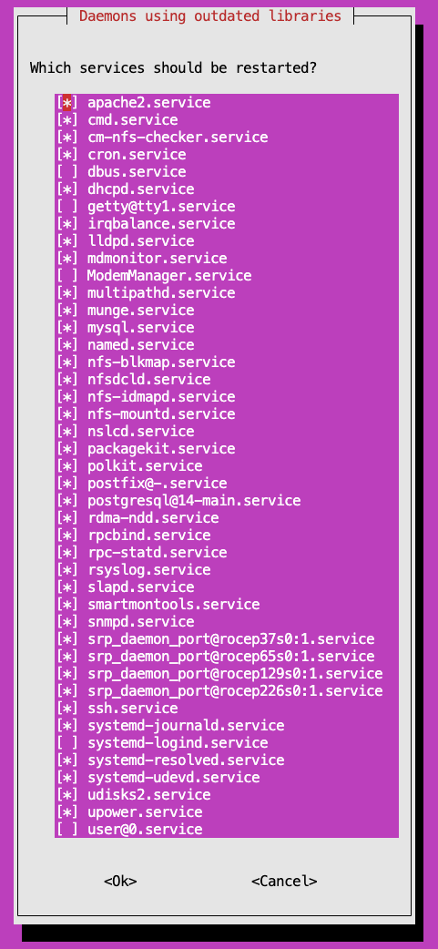 Update the Slurm packages. Select <OK> if prompted to select which services to restart.