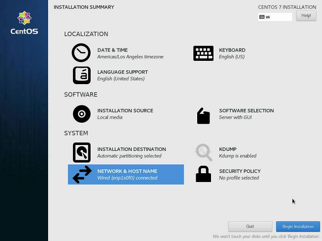 - From the INSTALLATION SUMMARY screen, click Begin installation to start