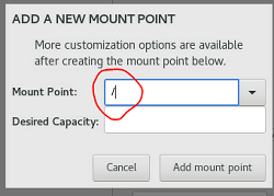 Set the Mount Point to / and leave the Desired Capacity empty, then click Add mount point.