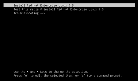 1. After booting the ISO image through either the BMC or from the USB drive, select Install Red Hat Enterprise Linux and then press Enter to start the installation.