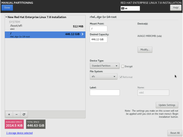 This section assumes you have booted the Red Hat Enterprise Linux ISO image, either locally or remotely for DGX-1, or locally for DGX Station. or DGX Station A100