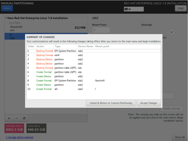 5. Click Accept Changes to get back to the main Installation Summary Screen.