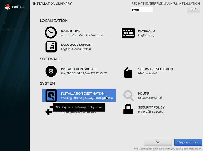 This section assumes you have booted the Red Hat Enterprise Linux ISO image, either locally or remotely.