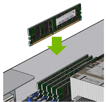 4. Using the following diagram as a guide, locate the faulty DIMM to be replaced.