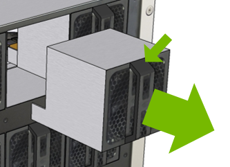 3. Remove the failed front fan module by pressing on the tab and pulling on the handle.