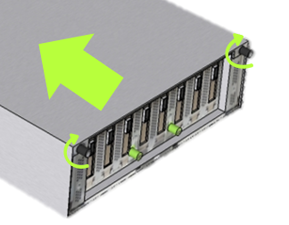 4. Close the levers toward the center, making sure the connectors engage with the midplane, then tighten the thumbscrews by hand or with a Phillips #2 screwdriver.