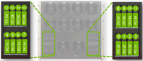 The command returns the PCIe bus ID. Refer to the following figure to find the slot ID that corresponds to the PCIe bus ID for the faulty drive.
