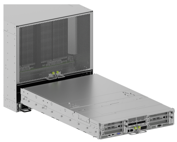 Pull the motherboard tray out until the locking mechanism in the lid engages and prevents further movement.