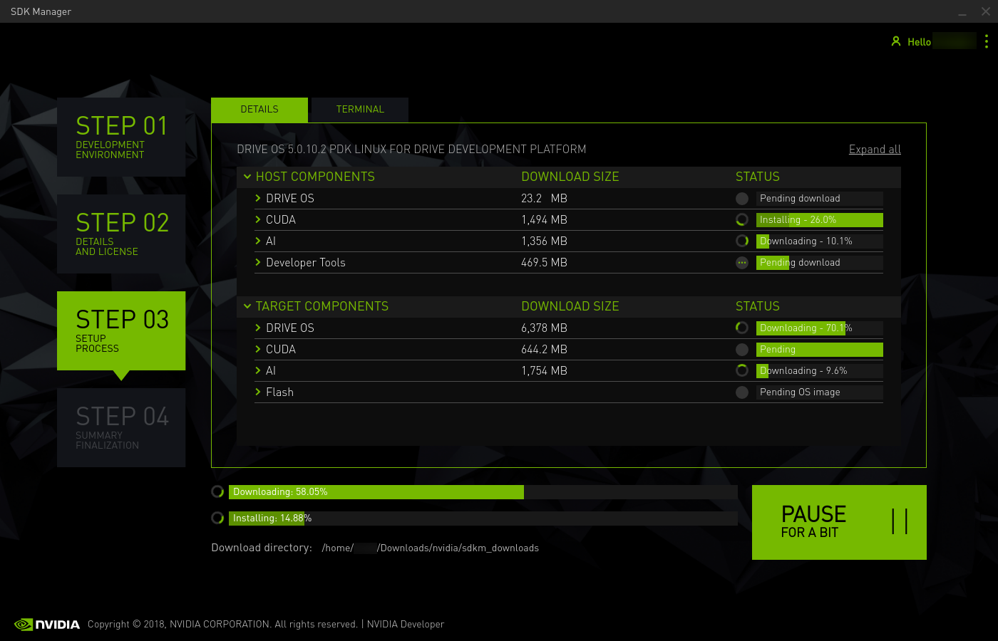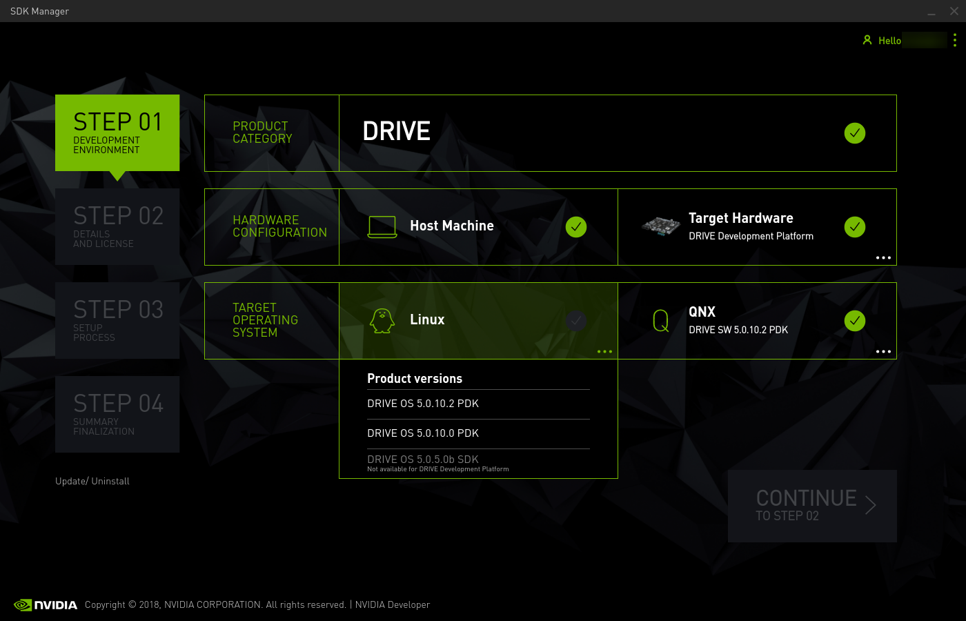 This section is intended to help you use the NVIDIA SDK Manager GUI to successfully configure your development environment.