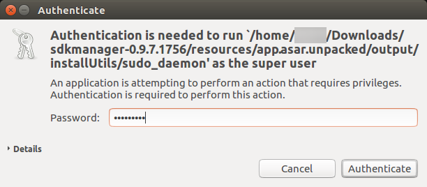 - Depending on your environment, you may receive multiple pop-ups asking you to re-enter the administrator/sudo password on the host machine, so certain packages can be installed.